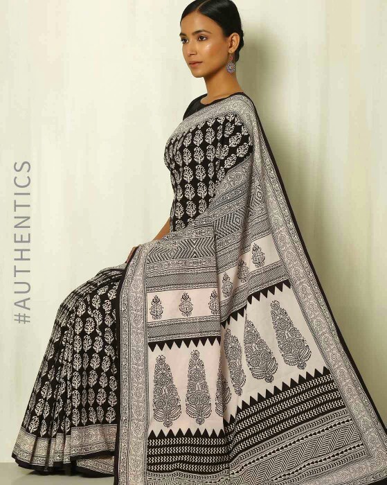 Ready To Wear Indigo Bagh print mul mul cotton blend Wrap in 1 minute saree