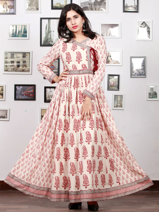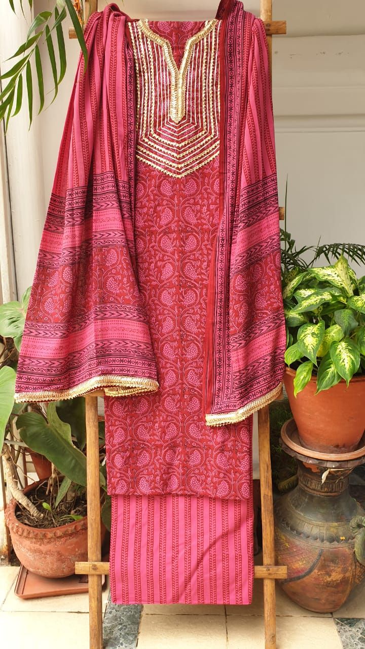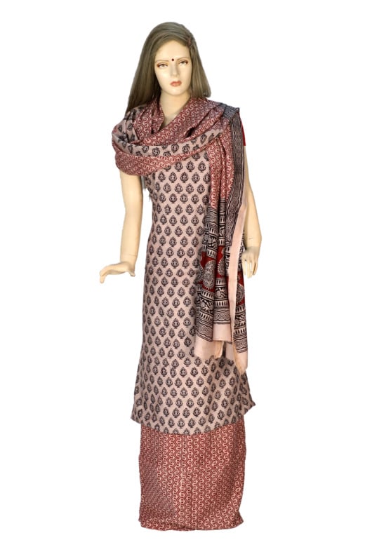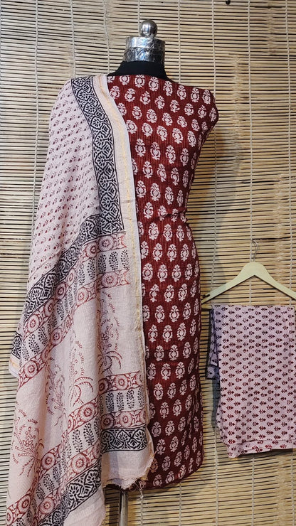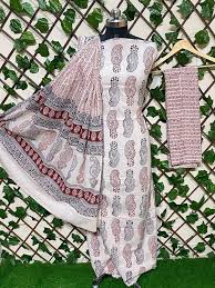 White Pure Cotton Bagh Print Unstitched Salwar Suit