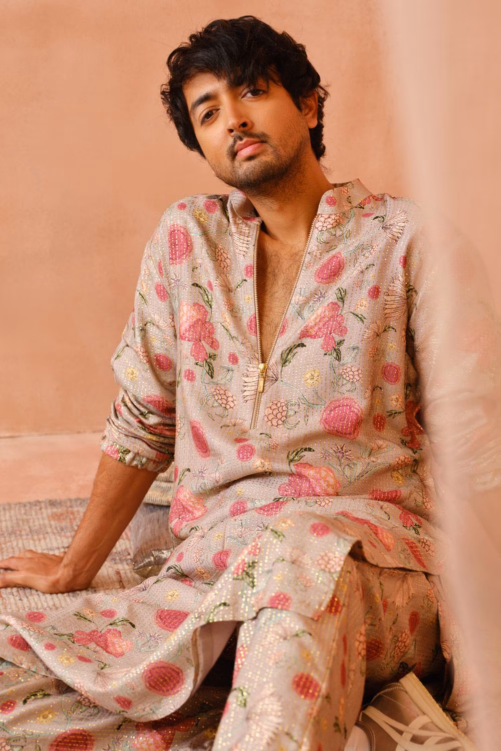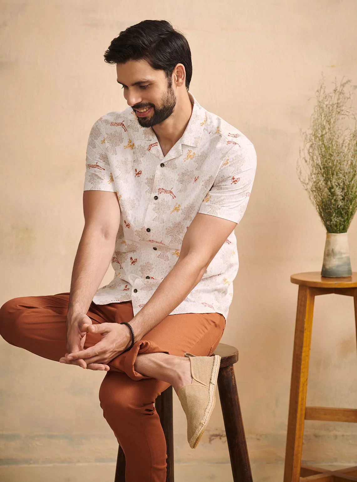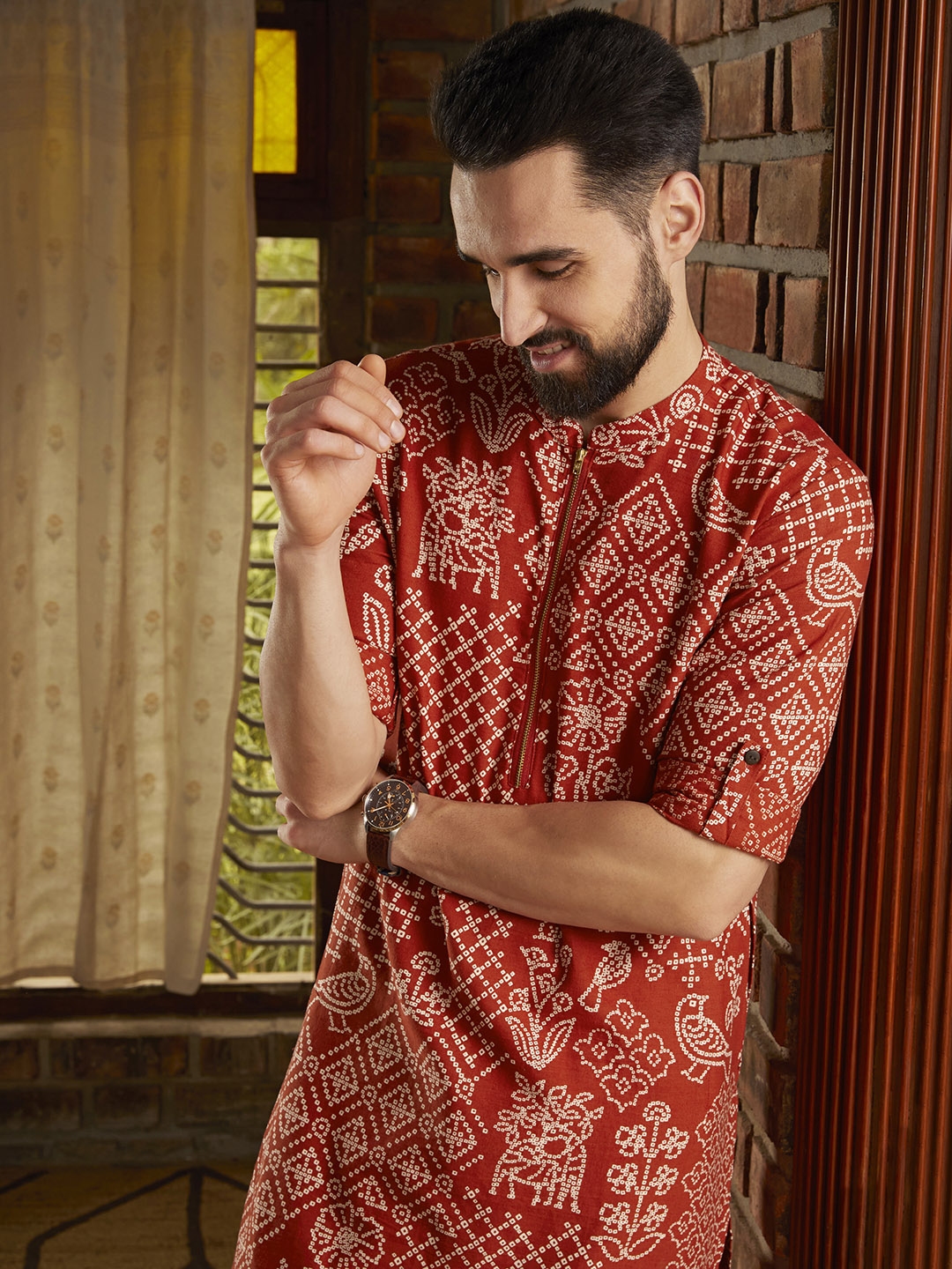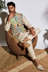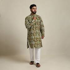 SVA Men Bagh print silk short kurta