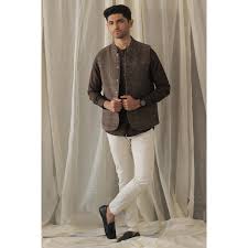 Men White Printed Satin Nehru Jacket