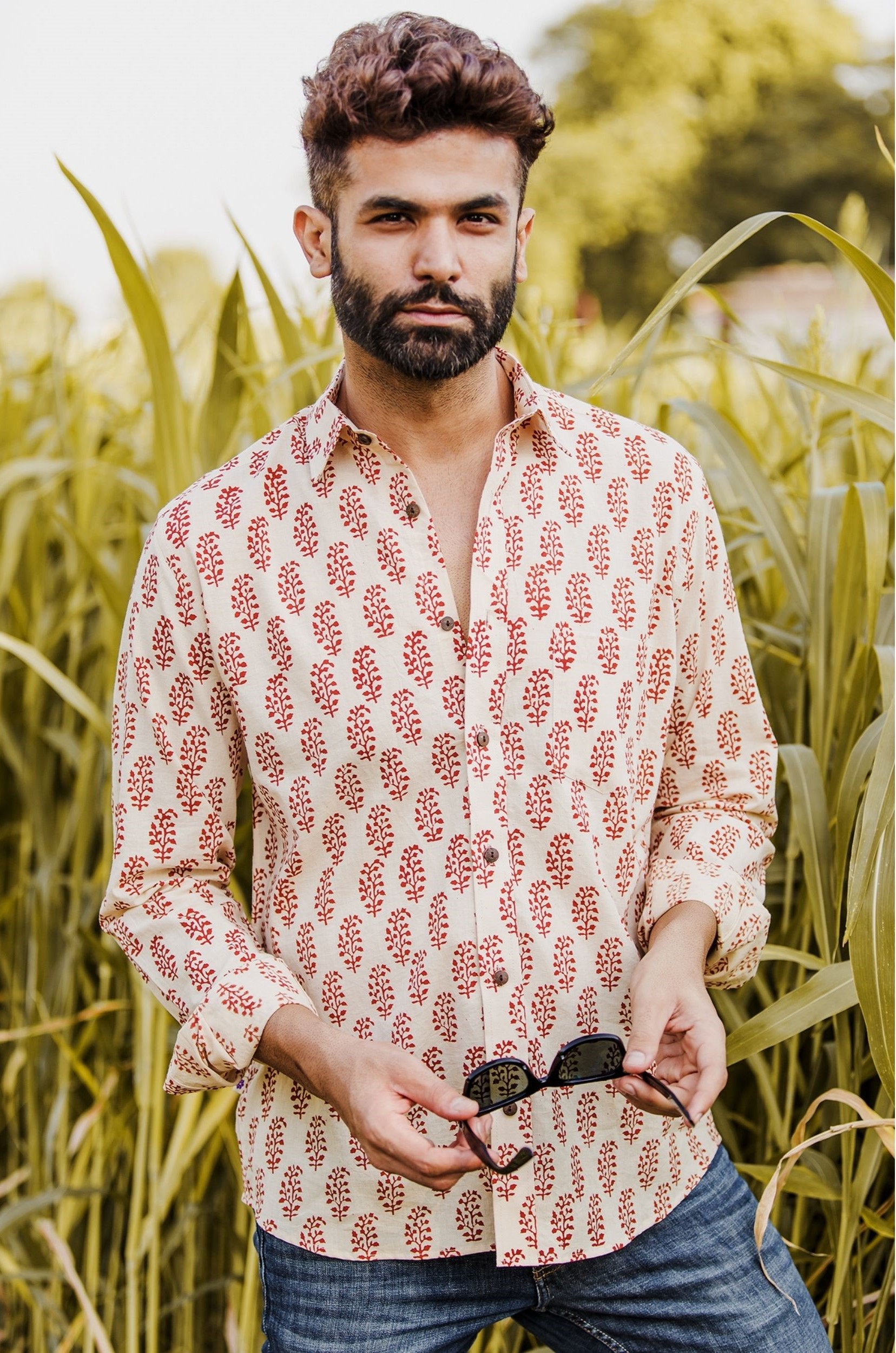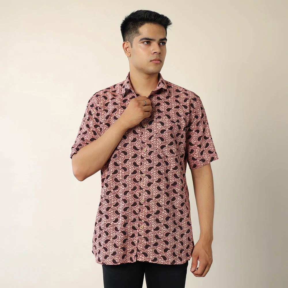 Multicolor Bagh Prints Kantha Cotton Men Half Sleeve Shirt.
